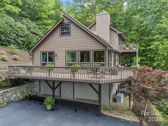 This home has been meticulously cared for by the current owners. No detail is too small, like cleaning the window seals each year to make sure the home is energy efficient. With cork and bamboo floors, a newly renovated kitchen, it is move in ready. Sitting on one of the two freshly stained decks enjoying the mountain views would be the perfect place to enjoy your morning coffee or to entertain your family and friends. The primary suite on the upper level offers a private deck, as well as walk in closet, sky lights in primary bath & jet bath with self cleaning feature. Home also features completely updated attic insulation, I wave ionization added to furnace, leaf guard gutters, and whole house generator. Sitting at over 3100 feet elevation, this home is surrounded by 2 acres of rhododendrons and mt laurels. The furnishings are negotiable and so are any yard tools that are in the exterior shed. This is a wonderful gated community within 15 minutes of downtown Asheville.