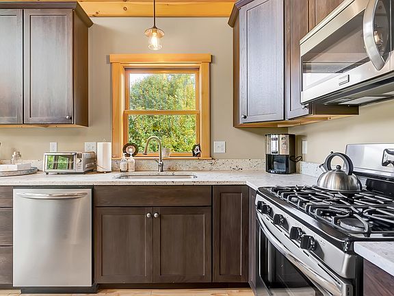 Beautiful 4 bedroom, 3 bath home located only 5 minutes from Bethel and 12 minutes from Sunday River Ski Resort! Inviting inside and out with cherry kitchen, center island, granite countertops and stainless appliances. Open dining and living room with gas fireplace plus 2 bedrooms and a full bath on the main level. Large master bedroom with walk-in closet and tiled bathroom. The lower level has a spacious family room, an additional bedroom and bath with laundry. Spacious mud room perfect for storing all your gear. Westerly views and lots of privacy! Furnished and ready for the upcoming ski season!