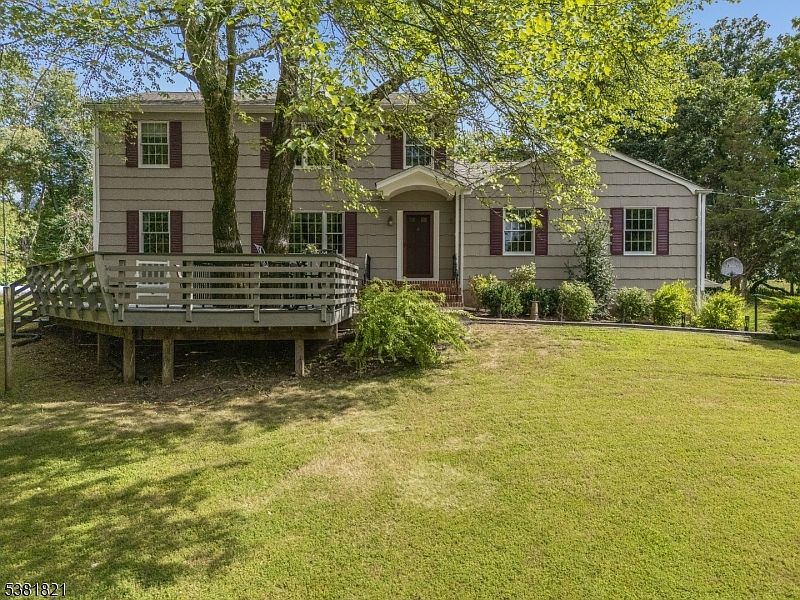 Set on a 3-acre flag lot, this custom 4 bed/3 full bath home combines the best elements of a private, rural setting with convenient access to shopping, schools, restaurants and more in Flemington. The focal point of the home is an expansive custom front deck built around and among the trees for natural shade, recently re-finished with composite decking- this area is perfect for entertaining and for enjoying the large yard. Enter the home to find a cozy family room centered around a woodburning fireplace, an eat-in gourmet kitchen with a large center island, a dining room, and a formal living room. Down the hall is a full bath and three generously sized bedrooms, including one with its own en-suite bath that would be a perfect guest room or for potential use as a first floor primary. Upstairs, a massive primary suite bathed in natural light from windows on three sides serves as a true oasis away from the hustle and bustle of the rest of the home. The suite includes a luxurious bathroom, a walk-in closet, a separate sitting area as well as a nook perfect for use as an office space, library, or nursery. A laundry room rounds out the second floor. Below, the two-car garage entrance leads into a partially finished basement currently used as a gym space, with other rooms perfect for use as a workshop or home office. Set among local parks and farms, this home is convenient to highways 202, 31, 78, and 287. Excellent local schools including Hunterdon Central Regional High School.