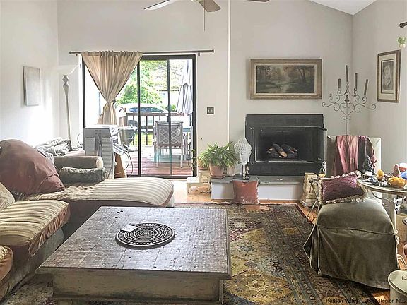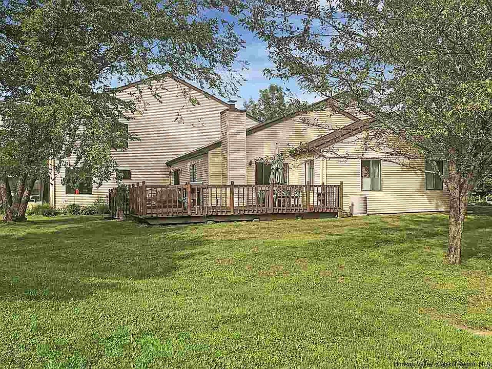 RARE OPPORTUNITY - One level townhouse living just minutes from Woodstock Village. Located in the peaceful and serene Maverick Knolls, enjoy an easy life with very little to no maintenance. The condo complex has a large pool, tennis court, beautiful pond, open fields and a wooded area at the rear which offers the residents the best of country life while still being close to many amenities such as a supermarket, health food store, restaurants, pharmacy and more within minutes. This end unit features a large wrap around deck for BBQ's or simply relaxing on a warm afternoon, vaulted beamed ceilings in the living room with an open plan to the kitchen and dinning area, laundry room and an attached one car garage. The home has three additional rooms, two bedrooms and one is currently being used as a den/office ( this could easily be a 3rd bedroom). Maverick Knolls includes a wonderful wide mix of full-time residents, artists, local business owners, retired residents and NYC second home buyers. It is also on the NYC bus route for easy commuting to the city. The homeowners association takes care of snow plowing & shoveling to your front door, exterior maintenance, the pool, tennis court and trash removal which provides for a stress free country life. This townhouse was first occupied by the builder of the condominium complex.