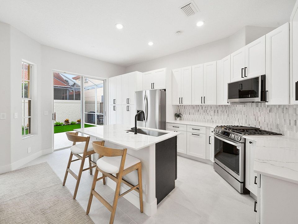 Welcome to your dream oasis in Monterey Point at PGA National! This stunning villa (1 story TH) showcases 3 bedrooms & 2 fully renovated bathrooms, with an array of desirable features including a brand new roof, newer AC, & WH. Step inside to be greeted by 24x48 porcelain floors & luxury vinyl plank flooring throughout. The impeccable upgrades continue with a new kitchen boasting quartz countertops, Shaker cabinets, & new appliances. The modern light & plumbing fixtures add a touch of sophistication, while the impact front door provides peace of mind. This home also offers a flex room for your personal needs. Enjoy outdoor entertaining in your lanai with an outdoor gas connection for your grilling needs, new landscaping and turf. This home is truly the best home in PGA under $700k!