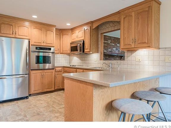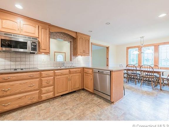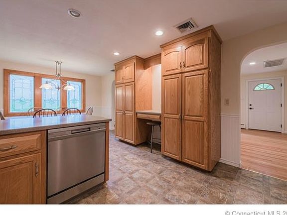 Don't miss this one! Split level tucked away in a convenient neighborhood, close to everything! Lovely family room off back with beautiful fireplace and cathedral ceilings. Hardwood floors, large kitchen with soap stone counters, stainless steel appliances, and new flooring. Two full updated bathrooms, and an additional finished room in lower level with full bath and own entrance would be a great in law, master suite, or rec room. Front living room could be used as formal dining as well. Large 18x20 deck off back overlooking private backyard. Solar panels save on this house, Eversource bill ranges from $9-11 a month!!!