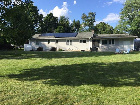 Come see this welcoming and spacious ranch that is move in ready and at the end of a quiet road. This home features a newer solar array (owner owned), newer furnace and hot water heater, 200 amp panel with net metering, lawn irrigation system, an attached 2 car heat/garage with workshop, and then 2 shed/garages on a gorgeous and well landscaped lot. Inside has over 1400 finished sq ft to include hardwood floors throughout, recently remodeled bathrooms, beautiful sun porch/family room and a master bedroom bath. Enjoy walking from the sunroom to the backyard patio and sit by the fire pit or hang by the nice shed in the shade of trees. Enjoy the partially finished basement room with over 300 sq ft with a fireplace. This home will cost you very little in electricity as the solar array takes care of the total electrical needs and it was only installed in 2016 along with new roof. You can not find a better home for your family! Schedule a showing now!
