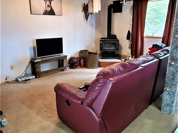 Talk about amazing Stuart Mt views! This fully furnished, rustic cabin is perched on a knoll with huge views. This place is looking for the perfect person to finish it off. It is mostly complete, just need a little effort and it will be complete. There are 2 bedrooms on the main floor and bunk sleeping above the living room. Home has a darling bathroom, hard wood floors, stainless appliances, a hot tub, and even 2, ON Demand hot water tanks. You never run out of hot water! Has a wood stove & wall heaters for heat. Lot has room to build a garage/shop if desired. A community pool included and tons of trails to ride on!