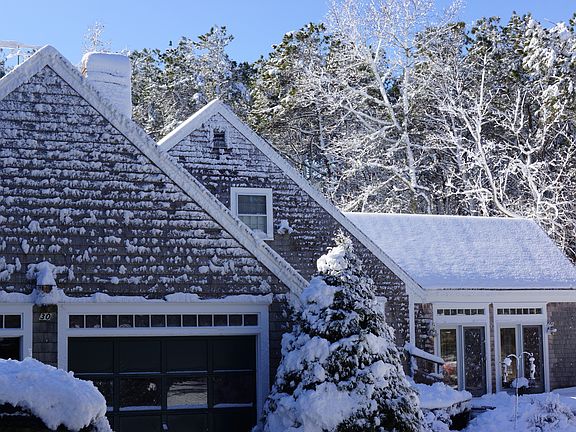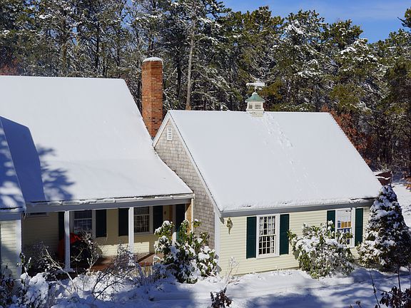 WELLFLEET EXPANDED SECLUDED CAPE - Privacy and all the conveniences of a top-notch Wellfleet location. Retreat to this spacious 4 bedroom/2.5 bath home located off a quiet cul-de-sac at the back of attractive Great Pastures sub-division. Enjoyable tucked-away location for friends and family to gather in peace and quiet! Short walk to views over the Herring River Valley - walk along Old High Toss or hike to Great Island. Enter to dining room from large deck through to spacious kitchen with wrap around countertop, skylight, large pantry, desk area. Steps down to comfortable sunny living room with windows on 3 sides and gas fireplace. Separate Living room with wood fireplace. Formal Dining Room. First floor master bedroom with beautifully renovated 5 piece en suite bath, washer & dryer. 2nd floor offers plenty of space with 3 bedrooms and full bath. Full basement for storage. Attached 2-car garage. All on 1.36 acre lovely wooded lot. Recent upgrades include new roof, attic insulation, hardwood floors throughout, high efficiency propane boiler, many new Anderson windows, siding, whole house generator, whole house high efficiency mini-split air conditioning system and kitchen appliances.
