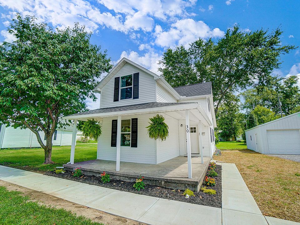 Welcome to this beautiful two-story home in the charming village of Jeffersonville. This home has been recently rehabbed with modern features and finishes. You will love the open-concept living room and kitchen, which boasts granite countertops and new stainless-steel appliances. The lower level features an inviting owner's suite complete with a full bath for your comfort, along with the convenience of an additional half bath in the utility room. Step outside and enjoy the spacious platform deck and backyard. Additionally, this home offers a 30x24 two-car garage. The home is conveniently located within minutes of the new Honda plant, I 71, and a forty-five-minute drive to Columbus or Dayton. Don't miss this opportunity to move in with immediate possession of closing.