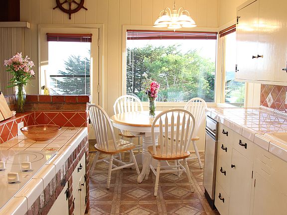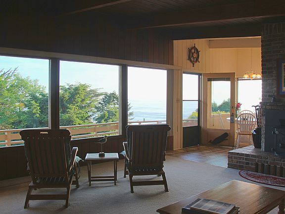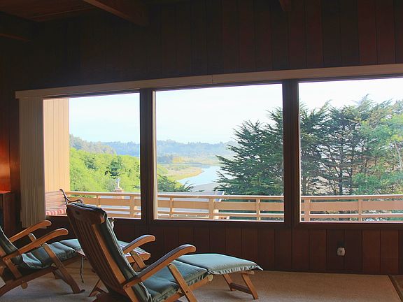 The VIEW is what makes this home remarkable. Take in the panorama of Moonstone Beach and the Little River from this custom hillside perch. Watch the waves roll in as the sun sets, fall asleep to the sound of the ocean. You can actually see the whales swim by as you putter in the kitchen. Large open living room features open beams, vaulted ceilings, a brick fireplace, and a wall of windows. Upstairs bedroom has 2 closets, and a view. Master suite downstairs has its own bathroom, lots of storage space, and its own deck. Easy-care garden and landscaping offers lots of outdoor opportunities. Pelicans roost seasonally along the Little River, and a variety of wildlife can spotted from the deck. Walk to Moonstone Grill for dinner! Size and square footage to be verified by buyer.