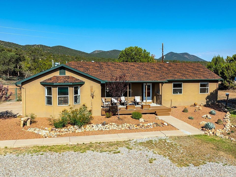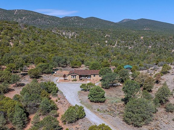 Minutes from town yet adjacent to the Gila National Forest—enjoy privacy, space, and the freedom of turning your 10 acres into hundreds. This 3BD/2BA home features updated kitchen and bathrooms with granite counters and alder cabinetry. Enter into a formal living room and formal dining room. The renovated kitchen leads to a comfortable den with gas fireplace, built-in shelving, and a large window with door to the patio. Covered and open patios plus a front deck provide great outdoor living spaces. Fenced yard for pets. A recent heating/cooling pump provides efficient year-round comfort. Attached 2-car garage plus three additional outbuildings offer excellent workshop and storage options, including a recent insulated 18x25 shop with power and a 10x18 canopy. Two portable buildings are also powered and insulated for hobby or storage use. Ideal for horses or animals. Easy to show.
