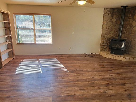Gas fireplaceUpdated kitchenCovered and open patiosBuilt-in shelvingComfortable denGranite countersFenced yard for pets