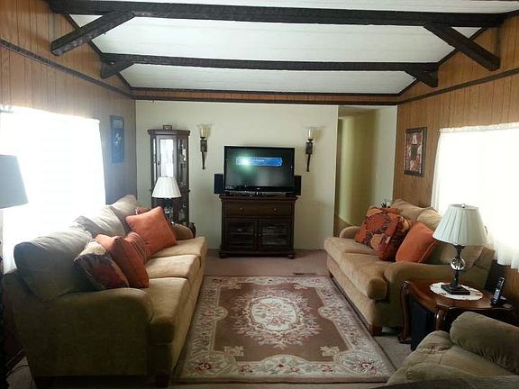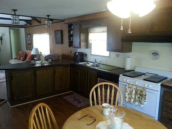 Great starter or retirement home! Clean, well kept 2 bedroom, 1 bath (double sink!) set on a quiet back lot. This mobile home backs up against the woods allowing for some privacy and nice view to enjoy morning coffee or dinner at night, the patio set is staying! It also includes perennial plants that will bloom for you next year. This mobile home features a new tankless hot water heater saving you money. Heat is currently kerosene which means no burner maintenance and further savings. If you prefer you can easily change to oil. Central air, blinds and ceiling fans that are only a year old will be staying, new rug and new kitchen floor add to the perks. The kitchen features a pantry with pull out drawers, great counter and cabinet space and fridge that is only 1 1/2 years old. This home is a great deal! Don't miss it!!!!