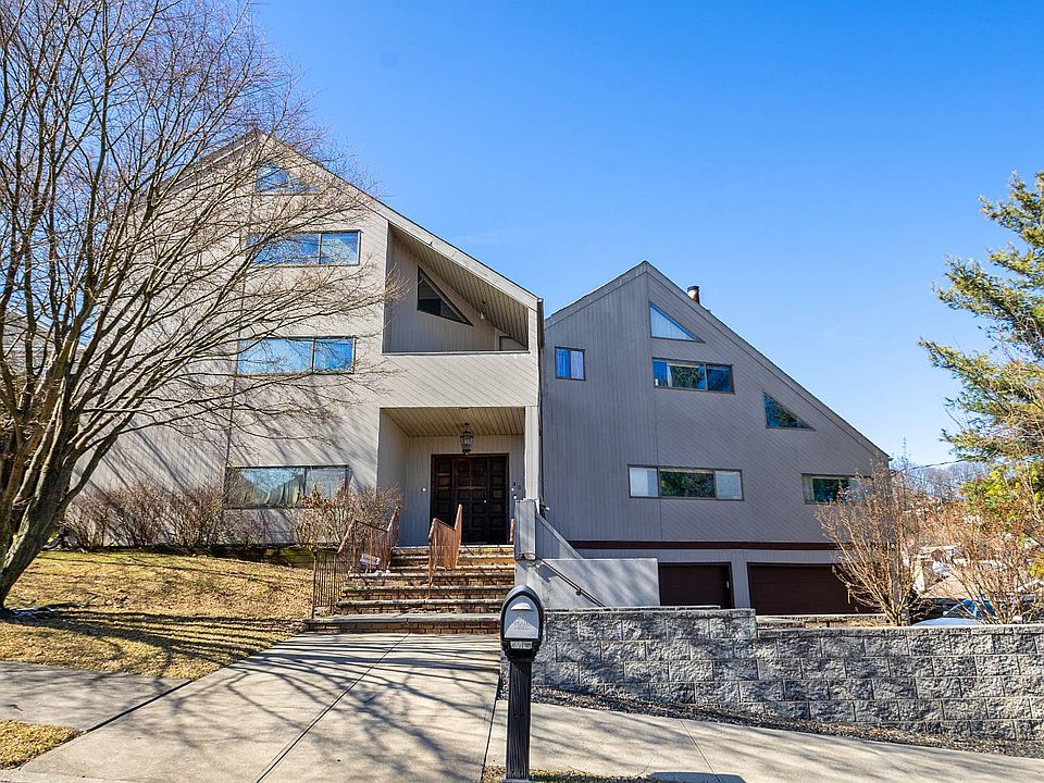 Welcome to Dongan Hills Colony, Staten Island... This is a rare opportunity to purchase a contemporary multi-level home situated on a property size of 77' x 200'. Perched high on the hill, this 6-bedroom 4 bath home is an entertainer's delight. High ceilings, this bright and airy home is replete with two separate office/libraries, recreation rooms and a heated 4 car garage. Great curb appeal. Enter the first level into the large living room and dining room with double sided fireplaces and vaulted ceilings. Open working kitchen with separate eating area and counter space. Also, on the first floor is a large legal home-office with separate entrance from the street which can be used as your personal preference. The family room/recreation room also complete with fireplace and cathedral ceilings with doors to side yard and rear deck. The next level has a two-bedroom suite... Up a few more steps up to the master bedroom suite, guest bedroom suite and two full baths. Master bedroom has a private terrace off the dressing room with sweeping water views and bridge views. Up a few more steps to the great two-story office/library with light, bridge views and skylights and additional two bedrooms. The lower level has multi-storage rooms, a very large recreation room with access to rear yard, full bath and access to the four-car garage. Outdoor property has 2500 square foot of deck with in-ground pool, veranda and seating areas throughout. New roof and skylights replaced in 2011. Multi air/heat units throughout for efficiency. Minutes to the Verrazano Bridge and Staten Island Expressway, Walk to express buses to Manhattan, convenient to shopping, restaurants and cafes. Welcome home and bring your contractor to give this your personal touch!