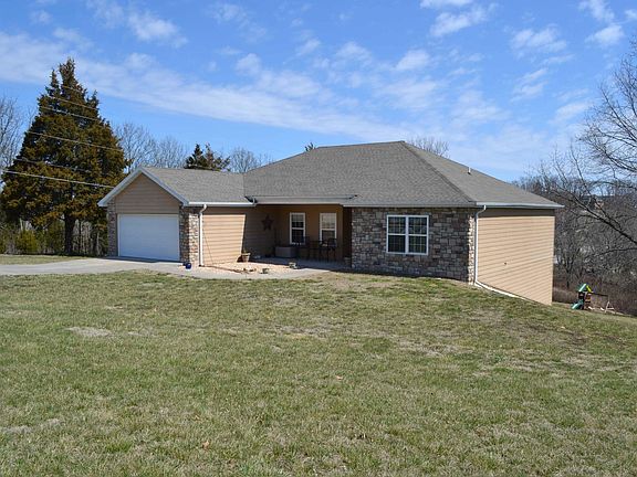 Beautiful 3 bedroom 2 bath with full walk out basement. 1.5 acres of room to play and a lake view from your front yard. This home is constructed of poured concrete basement walls, metal studs and a poured concrete main floor. Energy efficient. Basement is plumbed for a bath room and is 2000 square feet of a blank canvas. Everything you need to live is on walk in level. Bedrooms are great size with plenty of closet space. Fantastic galley kitchen complete with breakfast bar and breakfast nook. Living room is spacious and cozy. A mix of carpet and tile throughout the house. Master boasts a on-suite bath with a large Jacuzzi tub and walk in closet. 2 car attached garage. Home is located just 2.4 miles down Hwy DD. Gorgeous neighborhood and very quiet. Come check out your new home