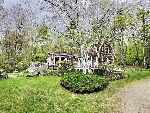 Bright and cheerful home with two lots of record and splendid privacy. Bring the outdoors in, looking out upon the sunny open yard, and open concept living. Perfect for entertaining, from the screen porch, home and spacious deck. Outdoor shower. Separate garage building with year-round multi-purpose room perfect as an art studio. Second floor studio with 3/4 bath, just right for guests. Storage room. Shared access to Gillingham Pond. The two lots of record consist of he 2.82 acre house lot ($599,000) and the abutting 3.37 acre lot (under value at $49,000). Minutes to Lake Sunapee and Vail's Mt. Sunapee ski Resort. 90 minutes from Boston. Perfect as a primary home or vacation retreat. House sold at $631,000 and additional lot sold at $49,000.