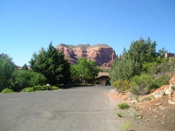 VIEWS, VIEWS! Warm and inviting Top-Of-The-Hill Location. Home has been well-maintained with open modern floor plan, vaulted wood beam ceilings in LR, stacked rock fireplace, split bedrooms, and plenty of character. Enjoy the views (including Bell Rock) from the huge covered deck with easy care landscaping. Excellent value.