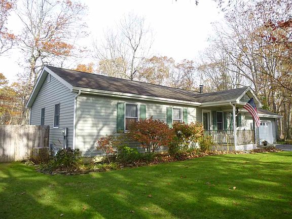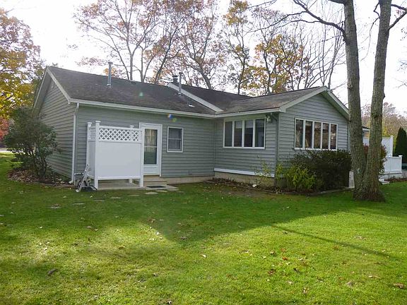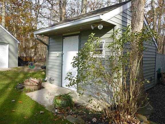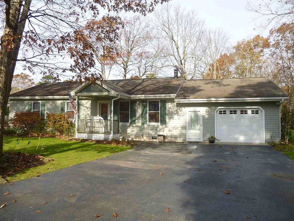 Located in a subdivision off Hand Ave with underground utilities. Enter into Living room with vaulted ceilings and wood stove, Good size Dining area,Kitchen has oak cabinets, breakfast bar also with vaulted ceilings. Off the Dining area is a Den/TV Room 12' X 16' with sliders to 12' X 24' vinyl deck and 12' awning and above ground pool. Also, off the dining area is access to laundry room with additional cabinets and counter top. Hall bath has skylight, jetted tub and vinyl floor. Two bedrooms each with wall to wall and ceilings fans. Master bed room wall to wall, ceiling fan and full bath with shower stall. Finished garage with epoxy floor, metal cabinets galore & workbench & TV hook-up, pull down attic, heated, lots of built-ins.Exterior vinyl siding 2 years old, Two sheds, one of which is finished with electric heat and W/W, the other storage shed includes shelving. Irrigation for grassed area as well as beds, 21' above ground pool, stoned area for RV parking. Backs up to US Fish & Wildlife/ Appointment please