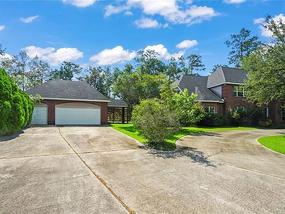 Sitting on 4.5 acres this classic Georgian with 5 bedrooms and 5 and 1/2 baths is looking for someone to bring it back to its stately past. Located in Brady Island, a gated development with Tchefuncte River access and its own marina. This home sits at the end of a cul-de-sac with a very private feel. Incredible great room with floor to ceiling windows overlooking the private rear acreage and 19 ft. ceilings. Foyer leading into the the great room has a massive curved staircase and 19 ft ceilings. Primary bedroom has a double sided gas fireplace and sitting room and double doors opening to the expansive deck. Large separate closets and bath makes this an exceptional owners retreat. Second floor has 3 large bedrooms ,a game room and play room. There is a three car garage with a full bath and large swimming pool with hot tub and swim up bar. Roof and all HVAC systems have been recently replaced. This property will require cosmetic updating from floor to ceiling but has a very open workable floor plan that should need no alterations.