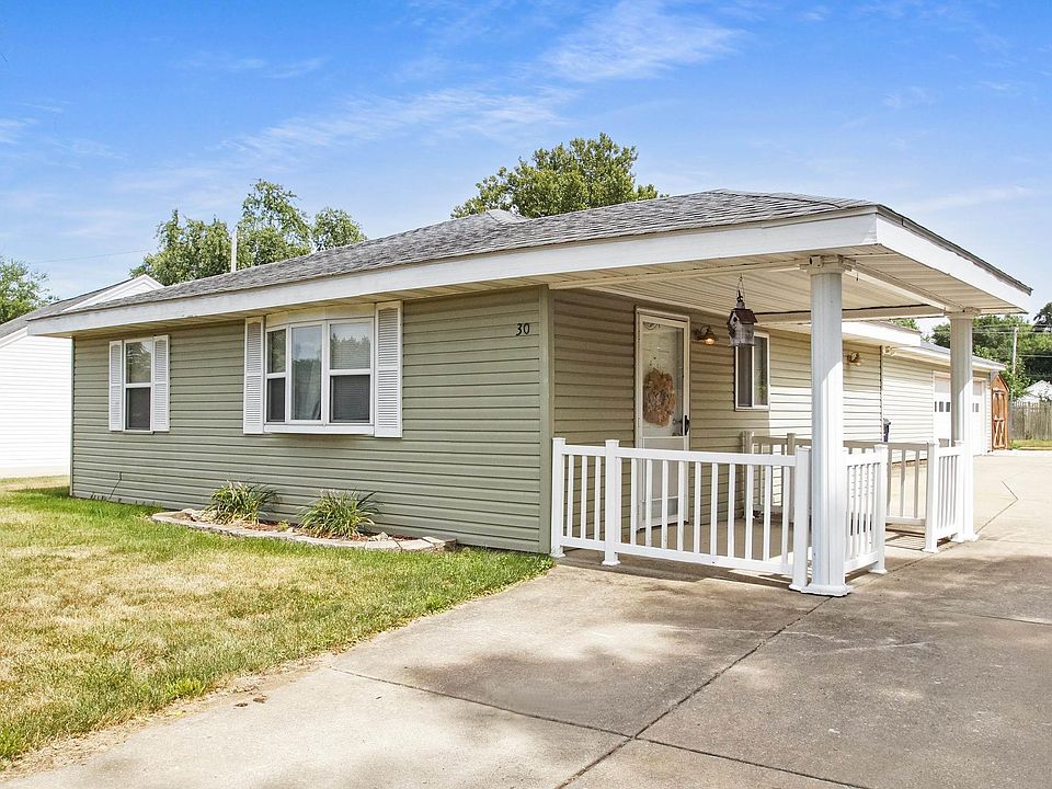Move in ready ranch home is right across from the park and offers convenient access to the interstate The HUGE garage is a hobbyist dream, with heat, AC, wood-burning stove, plenty of work space and room for up to 3 vehicles. The recently remodeled kitchen is lovely and fully applianced with plenty of cabinetry. The sizable Living room has beautiful wood floors. Outside offers a fenced in yard, a patio, additional (both paved & unpaved) parking area & a large shed for additional storage.