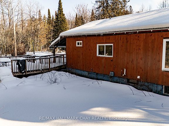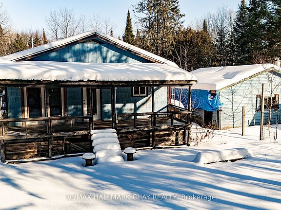 Power of Sale opportunity - property being sold as-is, where-is. Calling all contractors, flippers, and first-time buyers: endless potential awaits on the Big East River with approximately 200 feet of direct river frontage. Set on a private road and surrounded by mature trees, this peaceful and private setting is just minutes from Arrowhead Provincial Park and the Town of Huntsville, offering the perfect balance of tranquility and convenience. This year-round home or cottage features a detached double car garage (approx. 24' x 24'), large front and rear decks ideal for entertaining or enjoying scenic river views, and a full-sized unfinished basement with separate walk-up entrance, providing excellent potential for additional living space.