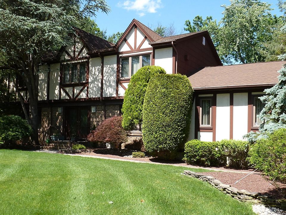 Set on a magnificent very manicured property, this updated 3000 sq ft, 5 bedroom, 3 1/2 bath colonial is located in desirable Country Estates. Exquisite kitchen has custom cabinets, granite counters, extended area with bay windows/sliding door, upgraded stainless appliances, ceramic floor, and center island. A dramatic picture window overlooks a beautiful trex deck, yard and mature trees. Spacious master bedroom has 2 closets and a stunning porcelain tiled bathroom with an oversized stall shower, 2 sinks (each has its own vanity), granite counters, whirlpool tub and bidet. Fabulous, large family room with bay windows and fireplace. Gorgeous hardwood floors (also under carpet in bedrooms). Economical 3 zone HWBB heat. Replaced casement windows. Huge finished heated basement with 3 rooms, bathroom, and unfinished storage area. Replaced 30 year Timberline roof. 2 car side entry garages. New driveway. Full zone lawn sprinkler system. Highly rated schools!