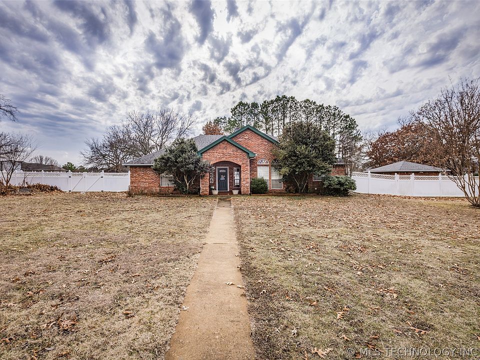 Don't miss the opportunity to live on this oversized corner lot in Silo School District! This home has a lot to offer: Real wood floors in the entry, hallway, living area and formal dining. On one side of the home there are two bedrooms and a bathroom. On the other side of the home is a spacious master bedroom with a 1/2 bathroom, perfect for house-guests. The master bathroom features a large tub, shower, his-and-hers sinks and double walk-in closets. The living room features a brick fireplace w/ gas logs. The kitchen has plenty of countertop and cabinet space along with stainless steel appliances and large pantry! This property has a HUGE fenced backyard and 14x15 workshop. Come and take a look at this lovely home before it's sold!
