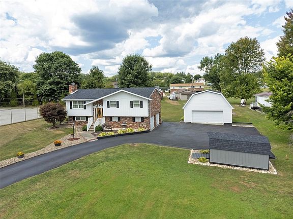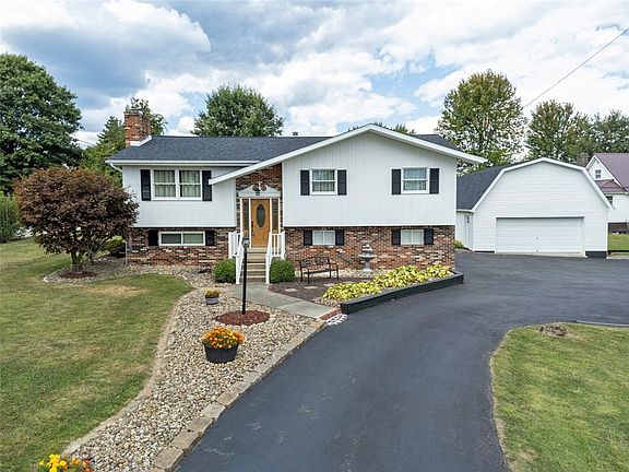 This move-in ready 3-bedroom split-entry home has been exceptionally well maintained by the homeowners and offers plenty of space both inside and out. The main level features a comfortable living room, dining room and kitchen with a sliding glass door leading to the back deck. All three bedrooms and a full bathroom are conveniently located on the main level. The finished lower level includes a game room with a cozy wood-burning fireplace, as well as a separate laundry room with washer and dryer. This property sits on two lots that provide an open, more private country setting. A fully paved driveway leads to the oversized detached garage (a car lover’s dream) with a second story loft for additional storage. A shed is also included for additional storage. Enjoy peace of mind with a BRAND NEW ROOF installed in May of 2025.