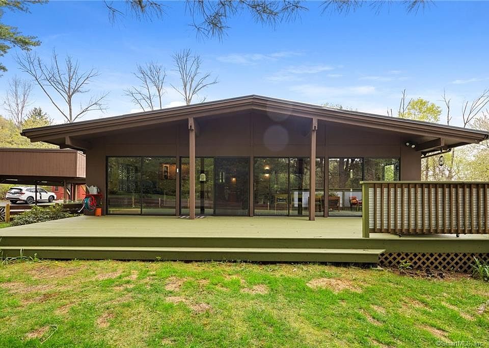 This mid-century modern house with classic features is a gem in its own right. As soon as you enter, you'll be welcomed into an open living area that features a beautiful brick-to-ceiling fireplace, which is perfect for those cold winter nights. The floor-to-ceiling glass-enclosed sunroom is 38x11, providing ample space for entertaining guests or just relaxing and enjoying the beautiful view of the outdoors. The slanted carport and open stairwell add to the modern and contemporary feel of the house. Expansive wood ceilings, beams, and plywood wall paneling are prevalent throughout the main living area, creating an inviting and warm atmosphere that's perfect for family gatherings or entertaining friends. The enclosed fence made of repurposed cedar wood is perfect for dog lovers or those who enjoy gardening. The primary bedroom features original built-in cabinetry, adding to the classic features of the house. This main level living space is perfect for those who love an open and expansive atmosphere with lots of natural light streaming through the floor-to-ceiling glass. The abundance of mature trees on the 1-acre lot provides privacy and seclusion from the hustle and bustle of everyday life. Additional Remarks Below in Addendum If you're an outdoor enthusiast, you'll love the easy access to Reservoir 6 and Heublein Tower, which is just a quarter-mile walk from your front door. The lower level has a mini kitchen, full bath, and a bedroom with its own entrance to a small patio, providing a separate living space for guests or family members. The Kloter shed is perfect for storing your outdoor equipment, and the newly stained deck with privacy panels is perfect for hosting outdoor parties. If you're a golf lover, you'll be pleased to know that there are six golf courses within a 4-mile radius. Bradley Airport is just 20 minutes away, and Blue Back Square is just 10 minutes away, providing easy access to shopping, dining, and entertainment options. There are also two Whole Foods locations to choose from, making grocery shopping a breeze. Hop on your E- bike and head to Wades or Rosedale Farms for fresh fruits and vegetables and other food supplies. Penwood Park is just half a mile away, providing easy access to hiking trails and outdoor recreational activities. In summary, this modern mid-century house with classic features is perfect for those who love the outdoors and modern living.