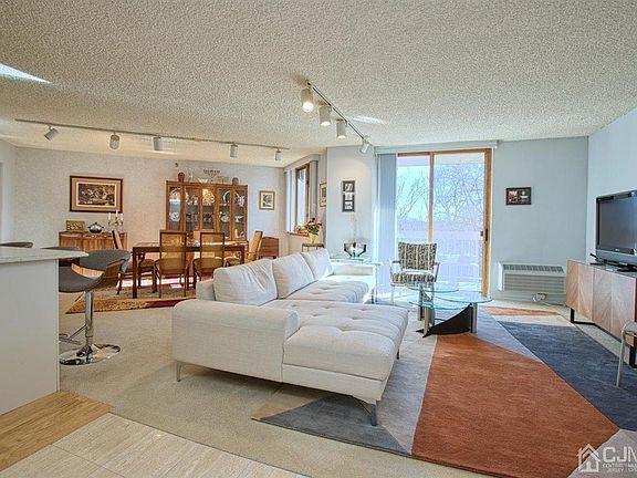Welcome to this sun drenched, well maintained, 2/2 in desired River Ridge Terrace. Entrance foyer w/marble floor unfolds into living/dining open kitchen floorplan. Kitchen has Quartz counter-tops/backsplash, breakfast bar, micro/wall ovens, dishwasher and newer refrigerator. Main bath w/tub/shower, 2nd bedroom has built in Murphy bed and desk that are a perfect conversion from a home office by day to bedroom by night. Master bedroom w/walk-in-closet, dressing/vanity area and a luxurious full bath. Marble tiled master bath, jacuzzi tub, double sinks and stall shower. Utility room, washer/dryer and 80 gallon HWH.DR has add.storage closet. Raritan River sunset views from both bedrooms and your outdoor terrace. Included with the sale, 1-uncovered and 1-covered parking spot, 2-storage lg. rooms located on the main floor and 24hr Concierge services. Close to New Brunswick, train, bus, stores and major highways. Seller will negotiate price if covered spot and or 1-storage unit is not wanted.