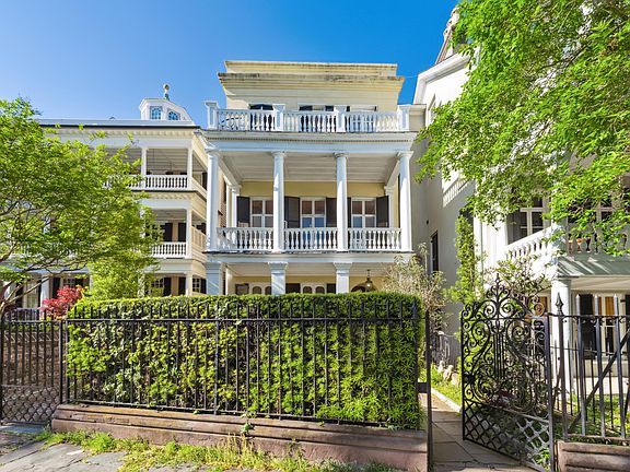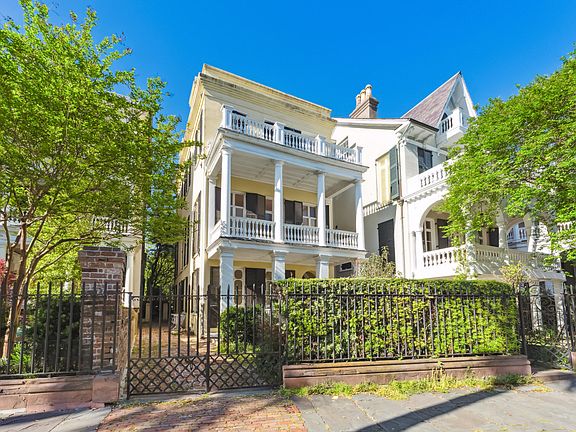 The James E Spear House, circa 1860, is a stunning three-story Italianate style home in the coveted South of Broad neighborhood. With an incredible location, overlooking beautiful White Point Garden and the newly restored Low Battery walk, curb appeal abounds. The front entrance includes an iron fence, gate and mature landscaping. The warm and welcoming interior features 4 bedrooms, 3.5 baths, and open, airy living spaces with stunning period details. Step inside this gorgeous, historic home and you'll be surrounded by incredible detailed moulding and over 15 ft ceilings. Directly to your left you'll enter a natural light filled formal sitting room that opens up to the spacious dining room via large pocket doors. Behind the dining room, you'll find the kitchen, laundry anda sitting area. A half bath and closet are also located in the main hallway on the first floor. Take the stairs to the second floor where you'll find the primary bedroom, an en suite bath, large walk-in closets and a large office space which are located in the back of the home. A spacious, light filled living room that opens to the large, covered porch overlooking White Point Garden and The Battery is also on the second floor. The third floor includes 3 additional large bedrooms and 2 full baths as well as porch access. There is an elevator that accesses each floor and interior stairs to access the roof. Make your way to the private backyard where you'll find a beautiful brick patio, dipping pool and additional garden space. A two-story carriage house with a separate entrance is located behind the main house and includes a living area, eat-in kitchen, bedroom, large closet and full bath. This gorgeous home offers all the charms of living downtown while also providing a beautiful, tranquil setting for entertaining and relaxing. This is an incredible opportunity to update a beautiful, historic Charleston home in one of the most sought-after neighborhoods in downtown Charleston.