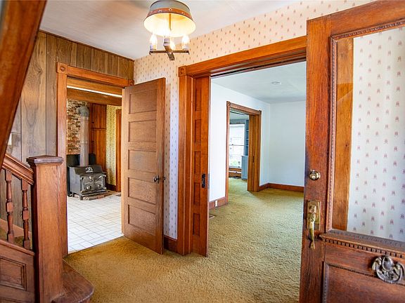 Located in the heart of the Village of Greene with an incredible wrap around porch and a layout that is perfect for anyone. The beautiful wood pocket doors, staircase and moldings are abundant and have been freshly cleaned and oiled. The wood floors are original to the home. From the kitchen you can either go outside on the covered deck for a BBQ or take the private staircase up to a private bedroom. The other 3 large bedrooms are upstairs along with the large full bath. There is so much charm and plenty of room to do as you wish. Yes, updating needs to be done however this home has GOOD BONES and without a lot of imagination, could be the perfect home for you.