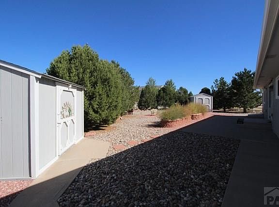 Beautifully adorned and spacious rancher in a very convenient location of Pueblo West. This home has wonderful upgrades throughout; from the detailed tile backsplashes in the bathrooms and kitchen to the rich hardwood floors with custom inlays you will enjoy all of the high quality finishes. You will feel the warmth and inviting atmosphere from lots of sunlight through the windows, sky lights & the rich wood tones will make you feel right at home. Enjoy this open one floor living concept with its spacious rooms & great use of space. Xeriscaped front and back for mow free maintenance, two storage sheds and ample parking top it off. Call to see this one before its gone!