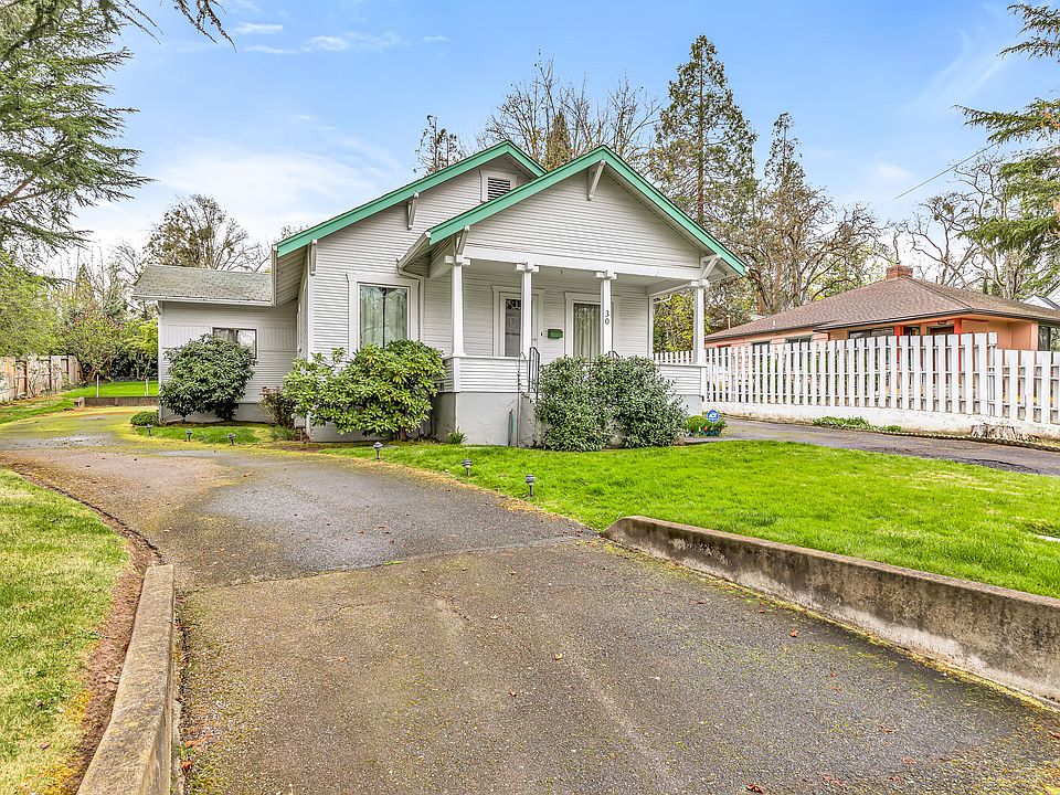 This was Grandma's house. Yes, it can use updating, but what a wonderful ''Old East Medford'' location and fantastic curb appeal! It's a unique 3 bedroom/2 bath home, a touch of yesteryear with a covered front porch, nice sized living room, the kitchen (w/pantry) is just waiting for a makeover, inside utilities, additional utility room (great for storage or small office) wood floors under the carpet, newer vinyl windows, gas heat, covered back patio, mature landscaping, 2 car garage, 2nd driveway for extra parking and more!