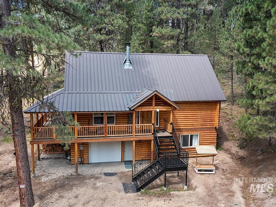 Discover your mountain escape in this stunning home on 4.56 wooded acres in the heart of Idaho's scenic foothills in New Centerville. Custom-built cabin perfectly blends rustic charm with modern upgrades, offering peace, privacy, and practicality. Featuring 3 bedrooms and 2 bathrooms across a versatile tri-level layout, the home includes a spacious upstairs primary suite with full bath, two main-level bedrooms / bath, and a lg sunlite basement provides a rec. room and laundry. Whether you're looking for a residence, family gathering place or weekend getaway, this home is move-in ready. The kitchen and bathrooms have been recently remodeled, combining fresh finishes with timeless style. Soaring vaulted ceilings and a cozy wood-burning stove in the great room create an inviting space to gather. Step outside to enjoy the wrap-around deck, perfect for entertaining or simply soaking in the forest views. Additional features include a metal roof, tree house, and a gently sloped area with potential for an RV pad.