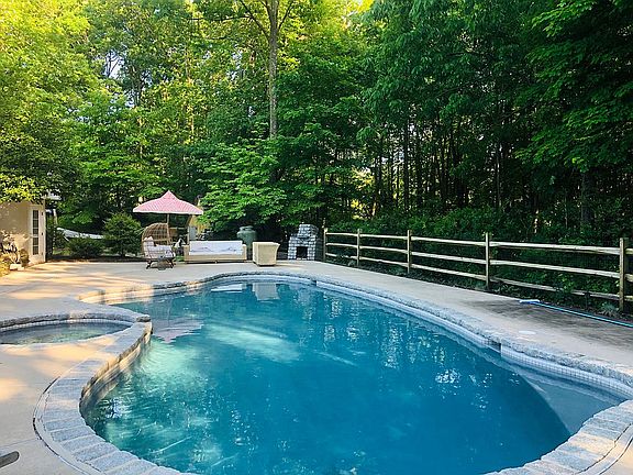 Cape cod home on oversized 1 acre lot, upstairs is master suite. Updates throughout house. Very large partially finished walkout basement that could be transformed into family room with additional bedroom and bathroom. Detached garage with pool house or potential rental. In ground pool that was re-tiled and plastered in 2019. Beautiful stone walls around patio.New walking trail behind property. Being sold as is with cosmetic finishes needed.