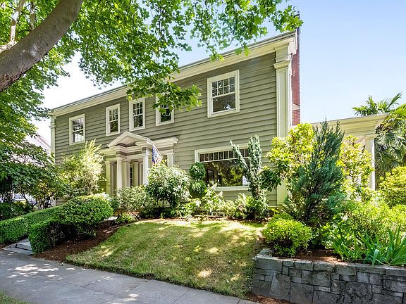 This grand Portland home is an experience not to be missed. An inviting entry pulls you into the exquisite craftsmanship and period charm evident in all the fixtures and finishes throughout. A huge,light drenched living room awaits you with french doors framing the replace that open to a charming porch where you can sit and enjoy the lush, mature gardens. You'll love entertaining in the grand dining room that connects to the timelessly updated, gourmet kitchen with high-end appliances and a delightful breakfast nook overlooking the private courtyard. Cozy up with a book in the main floor study surrounded by handsome mahogany woodwork and period builtins. Don't forget to take a peek at the perfectly decorated main floor half bathroom. The second floor boasts beautifully renished, original hardwood floors, four generously sized bedrooms in addition to a primary suite oasis with a fireplace and bright, spa-like ensuite bathroom. On the upper level you'll find additional finished living space to work or play. The recently finished, spacious lower level features a full second living quarters with a modern kitchen, full bathroom, exterior access, and loads of storage. Located just steps from beautiful Laurelhurst Park, this home exemplifies a flawless blend of style, historic charm, and modern updates. Laurelhurst schools, close to restaurants, coffee, bars, and all that NE Portland has to offer. A true value! [Home Energy Score = 1. HES Report at https://rpt.greenbuildingregistry.com/hes/OR10205061]