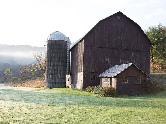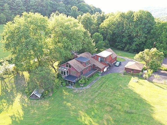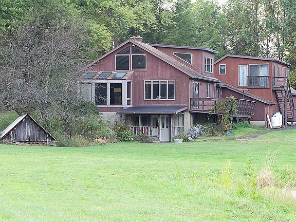 Very unique home with two private lakes. Two car attached garage and studio apartment. Fenced tennis court, outbuilding, springhouse with water garden, Two level barn with silo. drilled well. Beautiful views and lots of wildlife! The main property around the house consist of 89 acres (additional parcel of 121 acres with barn also for sale). Amazing land with many options from play to development. See photos for property map. Will be sold with mineral & gas rights.