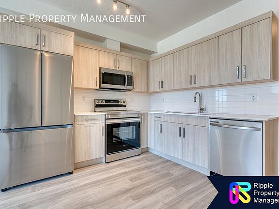 Sleek and modern kitchenPlenty cabinet storageOpen-concept designAmple storageWindow coveringsNearby parks pathways greenspaces
