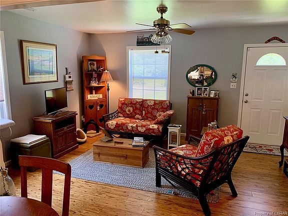 Charming cottage located in the heart of Deltaville! This home offers updates including: heat pump (2013), new tile in the kitchen and hardwood floors. One of the bedrooms offers access to the enclosed sunroom. There is a large deck (260 SQ ft), fenced yard and a detached shed. The community offers water access to Sturgeon Creek, including a boat ramp and pier.