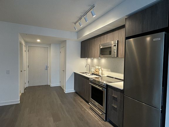 Modern 1 Bedroom + Den condo with underground parking at Kip District 2. This bright, open-concept unit features full-size stainless steel appliances, in-unit laundry, a private balcony, and modern finishes throughout. The spacious den is perfect for a home office or guest area. Enjoy top-tier amenities including a gym, guest suite, residents lounge, outdoor patio, and pet wash station. The building offers 24/7 security with onsite personnel. Conveniently located steps from Kipling Subway, GO, and Bus Terminal, and just minutes from the QEW, 427, and 401, with shopping, dining, and grocery options nearby.