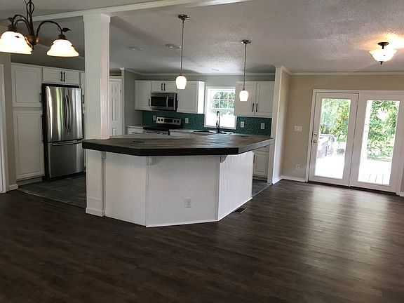 4 BR, 2 BA totally remodeled modular home features single level living! Features include an open floor plan, 2,052 sq. ft., living room, family room w/stone FP, & great room or office. Chef's kitchen w/new 4 piece Samsung SS appliances, custom kitchen sink, tons of cabinets & storage, custom center island w/quartz counter top & additional wrap around kitchen bar area, eat-in kitchen, soft closing sliding shelves & doors, large dual pantry area, & dining area. Master suite & BA w/2 separate sink areas, multiple head shower, walk-in closet w/built-in shelving, 3 guest BR w/new carpet, full BA, & laundry room. Fresh paint throughout, new luxury vinyl planking flooring, fans, & light fixtures. Expansive decking for entertaining w/multiple areas. Perfect for a hot tub & fire pit. 4 BR Septic.