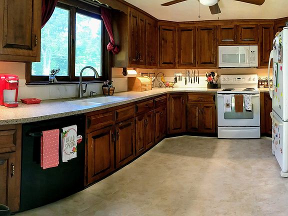 Well maintained split level fully applianced (Oven/range, microwave, refrigerator, dishwasher, washer/dryer). Hardwood floors throughout. 1.4 acre lot, well water, septic. Wonderful, quiet neighborhood, no through traffic on loop. Convenient commute to Farmington, Canton, Avon, Torrington & Bristol. --Updated kitchen with cherry cabinets, new tile back splash (2018), LED under cabinet lighting, new counter tops (2018) and one piece sink with faucet. --Living & Dining room combo, open main floor great for entertaining and keeping cozy by the fire in the winter. Massive window space overlooking the back yard. Sliding door off living room leads to an enclosed three season porch. Wood burning stove on main floor is efficient and large enough to heat the entire house. --Lower level family room. New tile (2017) in laundry room with walk out to the yard. Large basement workshop area with two walk in closets for storage. Furnace less then 8 years old, new water treatment system (2018), and new high efficiency toilet (2019). --Multi-car, wide driveway, oversized one car garage with attached carport. Large shed attached to garage for storage, newer deck space (2018) off back of shed perfect for a grilling area or small entertainment space in the shade. Fire pit and constructed space for swing set or other entertaining space.