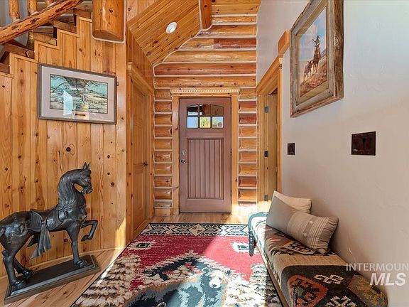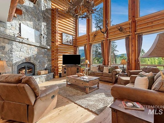 The "Tiffany Setting" of Garden Valley! Stunning views, custom log home & extensive Middle Fork river frontage! You're welcomed through an impressive log & custom gated entry, then cruise up the fully asphalted drive to your breathtaking home that offers the perfect blend of rustic flavor & luxurious amenities. Impeccably updated & remodeled--all that's left to do is to relax-soaking in the year-round incredible views, peace & quiet. Additional building right w/2nd parcel, 2 private & stocked ponds, gazebo, sand volleyball court & safari-style bonfire pit. Incredible horse/cattle property w/steel pipe fencing, solid set irrigation w/three phase power, shop w/RV garage, tack room, loafing shed, cross fenced with water in each pasture. Gooseberry Creek runs through the park-like property, as do elk, deer, nesting geese, bald eagles & more. This beautiful country estate gracefully provides livable elegance, all within 1 hour of Boise! Please view the video at: https://vimeo.com/953494058/1f714dee8c?share=copy.