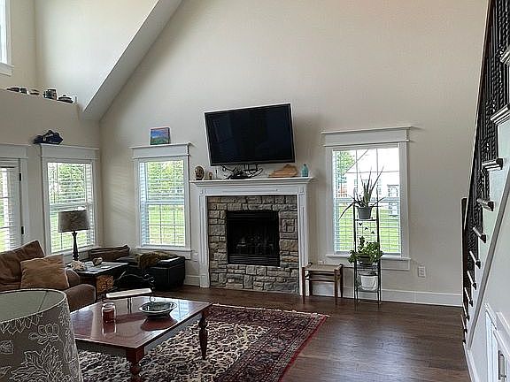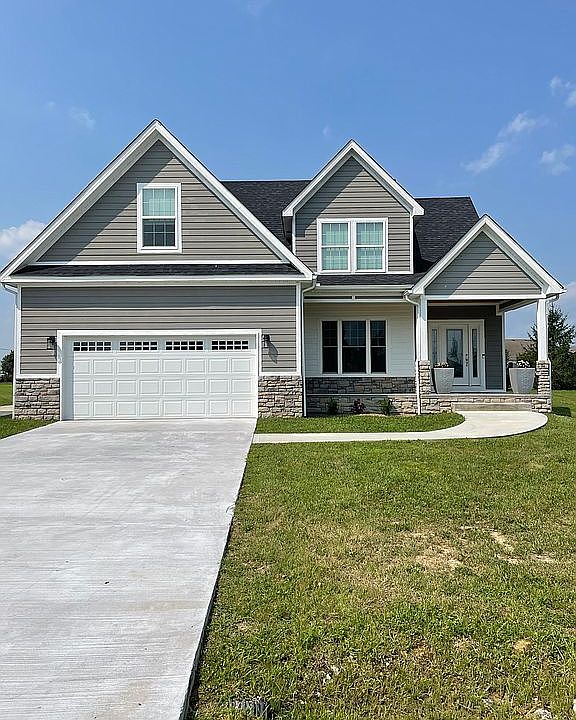 Built last year!! Modern yet traditional home on the market after only one year due to the owners relocating jobs. Open floor plan with abundant light from large windows in great room. Kitchen features granite countertops, stainless steel appliances, spacious cabinet space, and double ovens. Formal dining room, Master bedroom, and laundry area also on first floor. 3 bedrooms and 2 full baths upstairs. Custom-features such as gas fireplace, two-story ceiling, display shelf, and French doors leading to covered back porch. Beautiful architectural details on exterior with stone and low-maintenance siding. Spacious 2-car garage and wrap-around driveway leading to large parking area in the back. Basketball goal with almost half-court size area for play. Unfinished storage space upstairs. Contact the owner at (859) 552-9477 via call or text with any questions.
