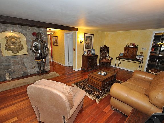 Private Ranch home located on 1.9 acres of level wooded property. Sitting privately off the road the home is unique in its kind. With a detached 4 car garage perfect for the car enthusiast or runninga business out of your home. A variance with the town is already in place allowing this. The garage is set up with extra space for an office or storage with built in air line/jacks, spray booth w/exhaust. Why pay for a home & business shop when you can have it all in one location? A separate entrance living space with a private bath and kitchenette makes a perfect inlaw suite. Enjoy evenings sitting on the back patio of your private yard with the outdoor fireplace looking onto the sprawling yard. Guaranteed to provide many peaceful nights. The first floor of the home provides nice easy living with everything located on one level. The family rm has a walk out, wet bar & a tremendous amount of storage.