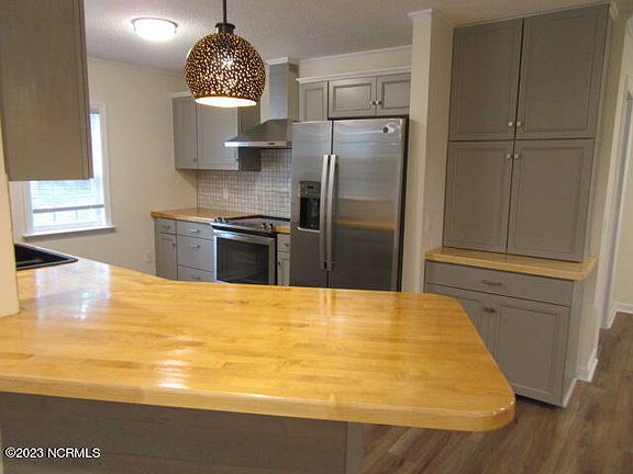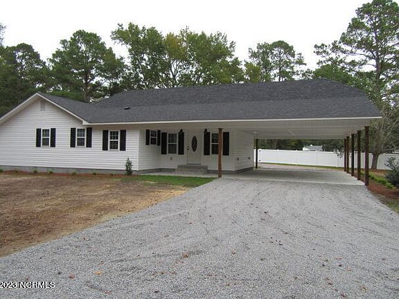 This is country living at its best in the completely remodeled three bedrooms and two bathrooms home settled on 1.58 acres. You can welcome your guests on the covered front porch or just relax, sit, and enjoy nature. An open concept living style, which includes the kitchen, breakfast area, dining and living room. All rooms have new laminated flooring and new fixtures. The electrical and plumbing are all brand new. The kitchen features all NEW appliances that include a BOSCH dishwasher and GE refrigerator and GE stove with an oversized hood to keep the home smelling fresh. There are butcher block countertops, ample gray cabinetry and eat-at-bar. Primary bedroom offers a large walk-in closet. The primary bathroom has double sinks and a bath shower combo. An oversized two car attached carport on a cement pad for clean parking of the cars. There are two sheds for extra storage or the two story shed would make a great playhouse for the children to spend their afternoons. The crawlspace has a vapor barrier, is spray foam insulated and sealed with a brand new dehumidifier that pumps the condensation outside of the home. The crawl space will stay clean and neat as a button and dry as a bone. The attic has insulation blown in from end to end with an additional layer added after remodeling. The home is a gem of energy efficiency. The home may have a year built of 1930 but the effective year built is 2023 due to the reconstruction. The only items left from the original home are six rafters in the attic and the footer. Everything else is brand new. There is additional access to the attic at the carport that provides access to a 8' x 20' area for storage. The backyard has brand new wood fencing for privacy and the front yard has a new white vinyl fencing with gated swing doors. The septic tank and septic lines are all brand new. Perfectly landscaped, seeded green grass, planted shrubs, and trees. This is a Norman Rockwell picture of American style if ever there was one.
