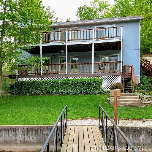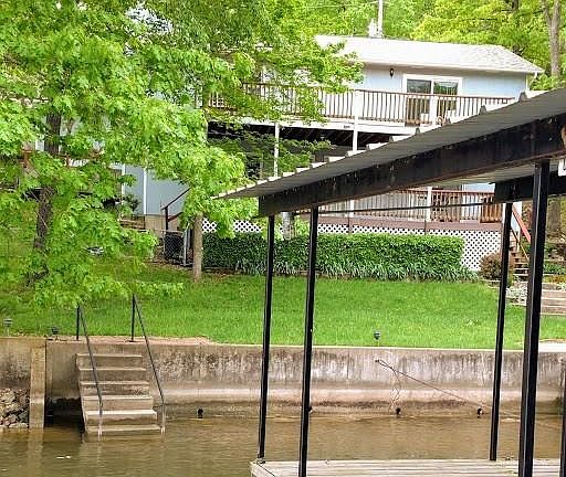 Great cove protection with an open view, just a few steps to your boat slip, large lot runs all the way to Shady Ln; neighbors barely visible, community dock with 3 slips, your slip is in the middle with hoist, walk-in home with main level living and large deck; lower level all finished with 2 bedrooms, bath, family room, laundry room, wet bar and also a large deck; fireplace on both floors, detached two car garage; located within minutes of all shopping and conveniences; walkway by seawall is common ground for neighbor's access to dock; Schedule your visit soon!