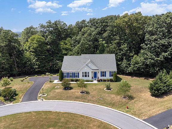 Super Spacious rancher tucked away in ll the cul de sac on the best street in Delta Ridge! 3BR 3BA Open floorplan concept and popular Bob Ward built Chesapeake floorplan boasts a spacious 2300 sq ft on the main level and additional 1000+ sq ft in the lower level!! 9ft ceilings, recessed lighting, lots of windows, nice neutral wall color and meticulously maintained! The open kitchen has ample maple cabinetry and an island, sunroom with vaulted ceilings overlooking backyard that faces the trees, family room with gas fireplace, expansive primary suite with ample closet and spacious primary bath, 2 additional bedrooms, and 2nd full bath round out the first floor. Fully finished lower level has a 3rd full bath, expansive finished area perfect for a multitude of uses, storage room and walkout to back yard. This property is complete with a 2 car garage, fenced rear yard and almost an acre of land. The propane tank is off the driveway and is owned.