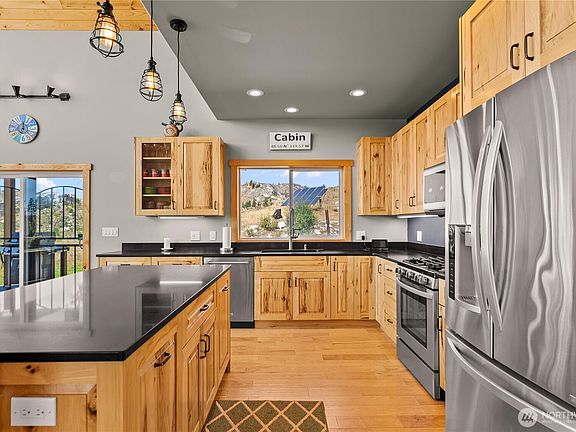 Exquisite off-grid retreat on beautiful Shalberg Lake, just outside Riverside and Omak, offers unparalleled privacy at the end of a tranquil road, just 30 minutes from local amenities. This masterfully crafted home features cutting-edge solar panels for sustainable living and superior construction for enduring quality. Inside, soaring vaulted ceilings, expansive windows providing the space with natural light, and a sleek, modern kitchen with premium, energy-efficient appliances await. A spacious insulated shop, perfect for workshops or storage, complements 1400'+ of private lakefront and dock, ideal for lake fun, kayaking, or peaceful relaxation. Embrace sustainable luxury in serene surroundings. Schedule your private tour today!