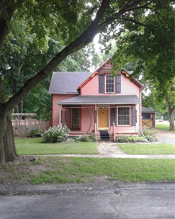 This Beautiful home in the Historical Village of Wyoming is the perfect place to sit on your porches and enjoy small town life. 3 bedrooms and 1 1/2 baths. The 300 foot lot has mature trees and lovely landscape. Custom fenced yard with Arbor entry, and best yet, the yard backs up to the village park. You name it, it has been replaced: Roofing, plumbing, electrical, and heating. and high end on demand hot water. The kitchen has custom hickory cabinetry and a vintage Farmhouse sink. Custom natural woodwork and doors throughout. Natural gas stove in living room. There is a 2 car detached garage and a artistically built shed perfect for a studio or playhouse.