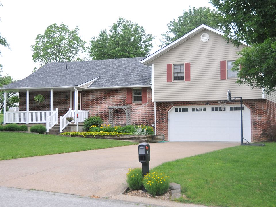 This 2928 sq. ft. (plus 264 sq. ft bonus room) quad level, brick and sided home, located one block from city limits. It has been maintained and updated with new roof, garage doors, siding, entry doors, water heater and carpet. It is located between 2 cul-de-sacs and makes a great area to raise kids. It has a Central-Vac located throughout the house which makes for easy cleaning. The upper level offers the 3rd car garage, 2 bedrooms and large bathroom with tub and shower and large storage closet. The main level includes the master bedroom that has vaulted ceilings and includes a private bathroom with separate vanity and walk in closet. The main level has an open floor plan with vaulted ceilings in the dining room and living room, laundry room on the main floor. A wood burning fireplace sits in the corner of the living room while 2 sky lights offers lots of natural light. The deck off the living room provides a great area for entertaining. The next level down plays host to the 2 car garage and offers a carpeted, closed off and heated bonus room and would make a great craft/sewing room or large storage area. The large game/tv area in the basement with a gas fireplace would make another great entertaining area in the winter months. The bottom level also includes another bedroom and large separate bathroom. More storage is included in the bottom level as well. This house offers the benefits of living outside the city limits, while being less than 5 minutes from shopping. call to see 573-470-7111
