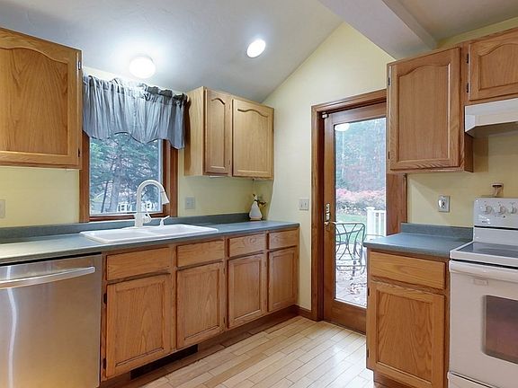 Set back off the road awaits this well maintained, move in ready Colonial. A front to back FR with glass slider to the outside welcomes you in with HW Floors leading to a guest ½ Bath, Formal Dining Room, open concept eat-in Kitchen/Living Room with a Dining Nook between, Laundry RM, Mudroom and bonus room/office. Primary quarters sit above the garage offering a spacious retreat to unwind at the end of the day with 2 spacious closets, private ensuite and hallway leading to 2 addt’l BDRMS and a Full BA. A wooded perimeter abutting conservation land wraps the 2 ¼ acre lot creating privacy to enjoy the back deck leading to a patio, farmers porch and backyard spacious enough to add a firepit area to cozy up and roast marshmallows out on! Plenty of space throughout this home and in the basement (ready to be finished!), plus off-street parking for 5 vehicles & additional parking in the heated 2 car garage below.